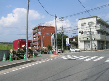 台風で倒れて道路をふさいでた木は切り刻まれてこんな姿に・・・。